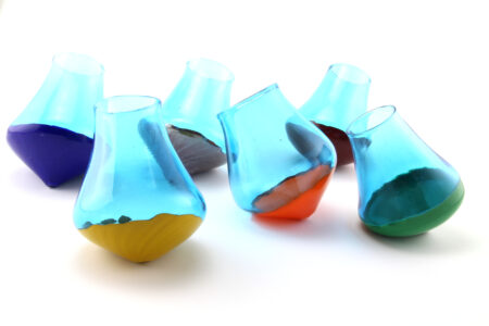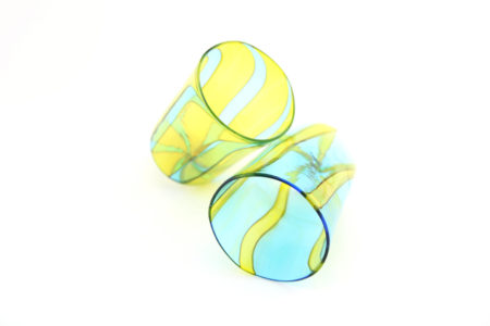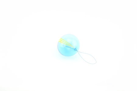 Glass blown Christmas ball, made of aquamarine trasparent glass and yellow filigree rods.