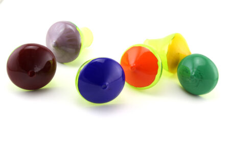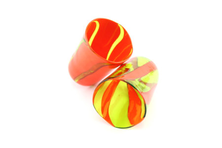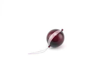 Glass blown Christmas ball, made of amethyst trasparent glass and yellow filigree rods.