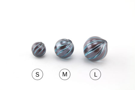 Glass blown Christmas ball, made of black glass and white filigree rods.